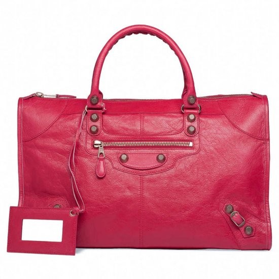 Description: Hand stitched handles - Top zip closure - Palladium plated metal hardware - Front zip pocket - Interior zip pocket with Balenciaga engraved plaque - Leather framed hand mirror - Made in Italy.