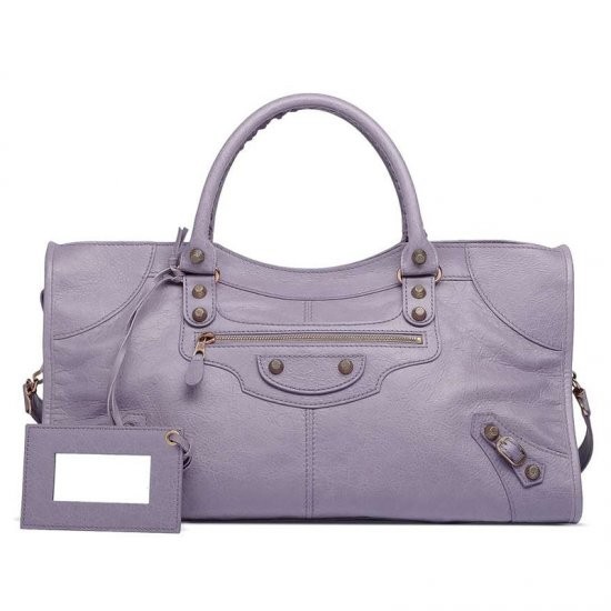 Description: Hand stitched handles - Removable shoulder strap - Top zip closure - Rose gold plated metal hardware - Front zip pocket - Interior zip pocket with Balenciaga embossed leather label - Leather framed hand mirror - Made in Italy.