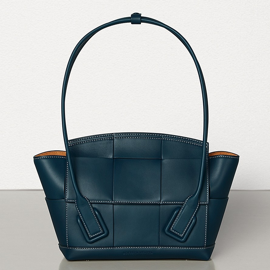 Bottega Veneta Arco 33 Intrecciato Bag In Navy Blue Calfskin