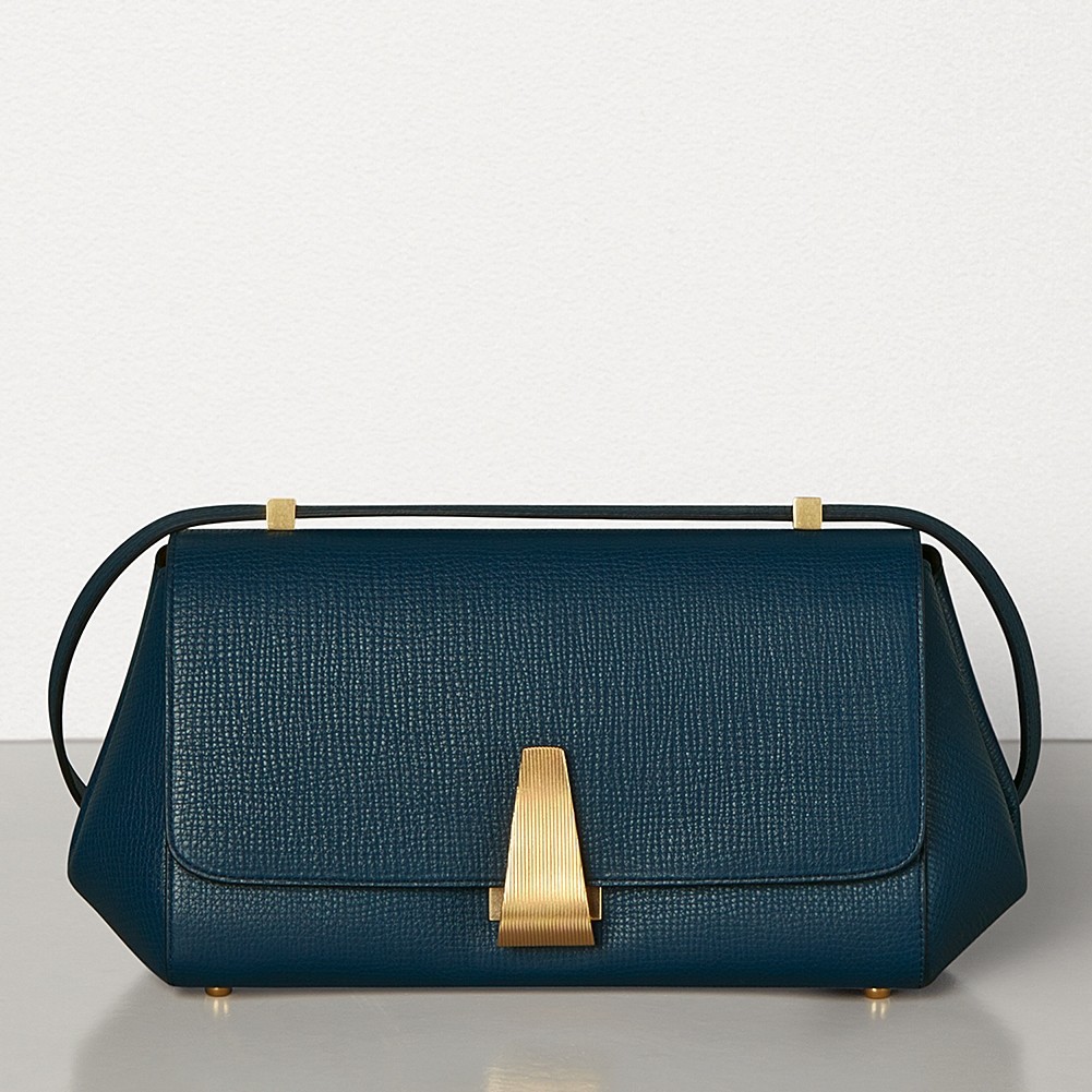 • Bottega Veneta Small BV Angle Bag In Deep Blue Palmellato