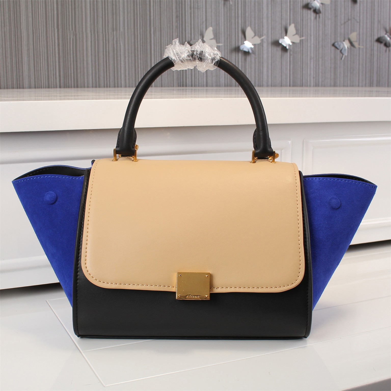 You're reviewing: Celine Large Trapeze Beige Black Blue Suede