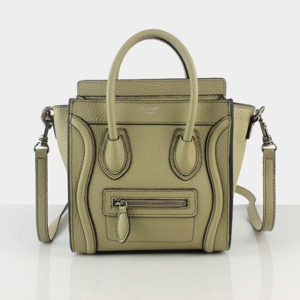 Celine Small Luggage Tote Beige Gray Leather Bag made from genuine leather emits a feeling of maturity. On the basis of mature temperament, the designer is with smile shape in the front which will also add a feeling of innocence and cuteness. If you would like to be mature and innocent at the same time, why not choose our online sale cheap Celine Luggage Bags with top quality guaranteed.