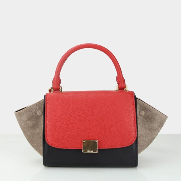 Celine Small Trapeze Red Black Khaki Suede Bag