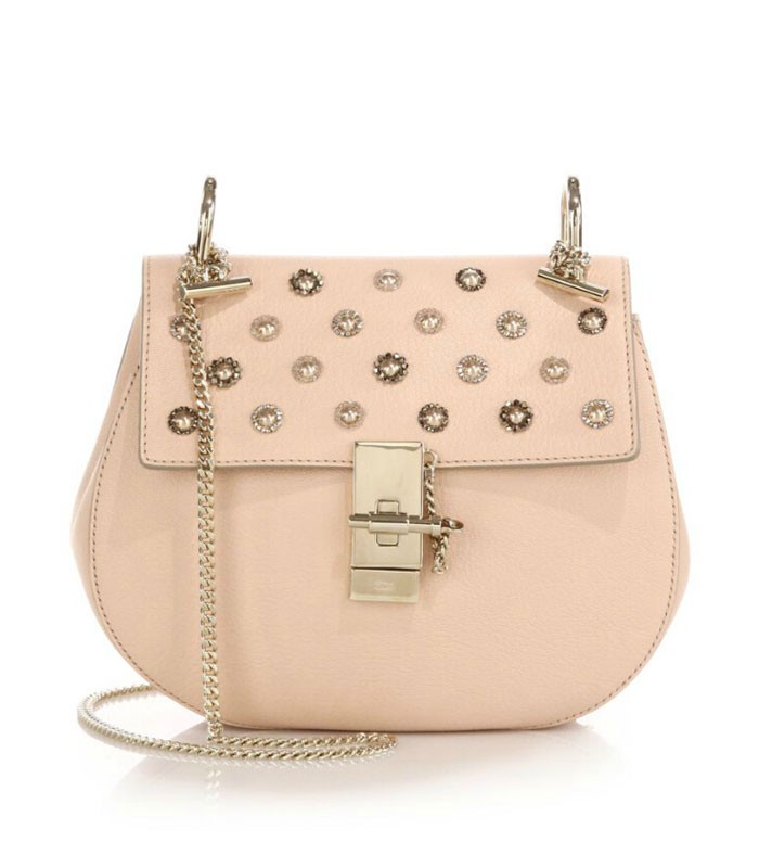 Chloé's signature saddle-bag silhouette is beautifully updated with feminine flair, its flap studded with flowerlike crystal embellishments glowing against a backdrop of rich leather.