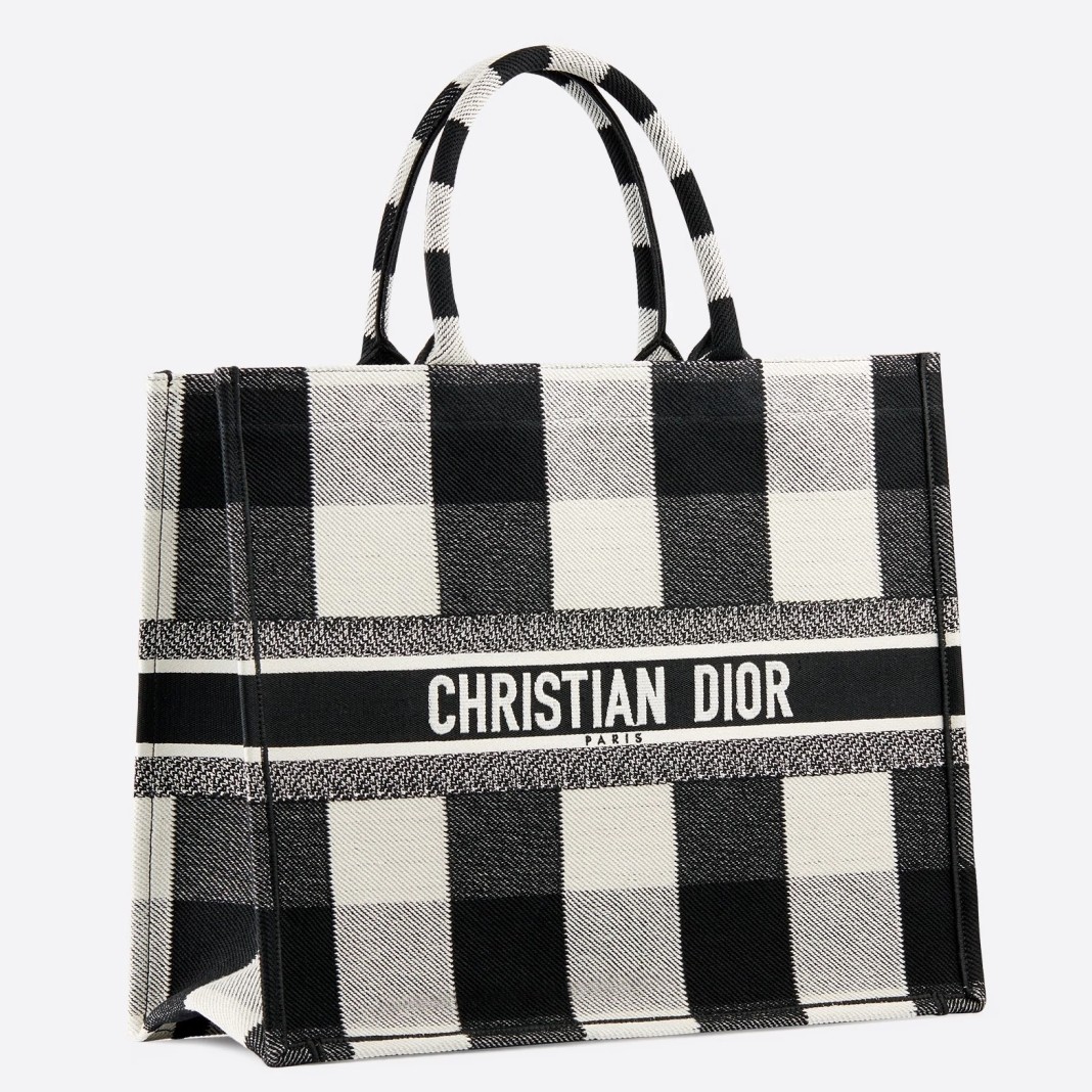 • Dior Book Tote Bag In White/Black Check Embroidered Canvas