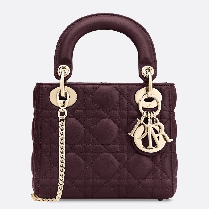 • Dior Bordeaux Lambskin Mini Lady Dior Bag With Chain