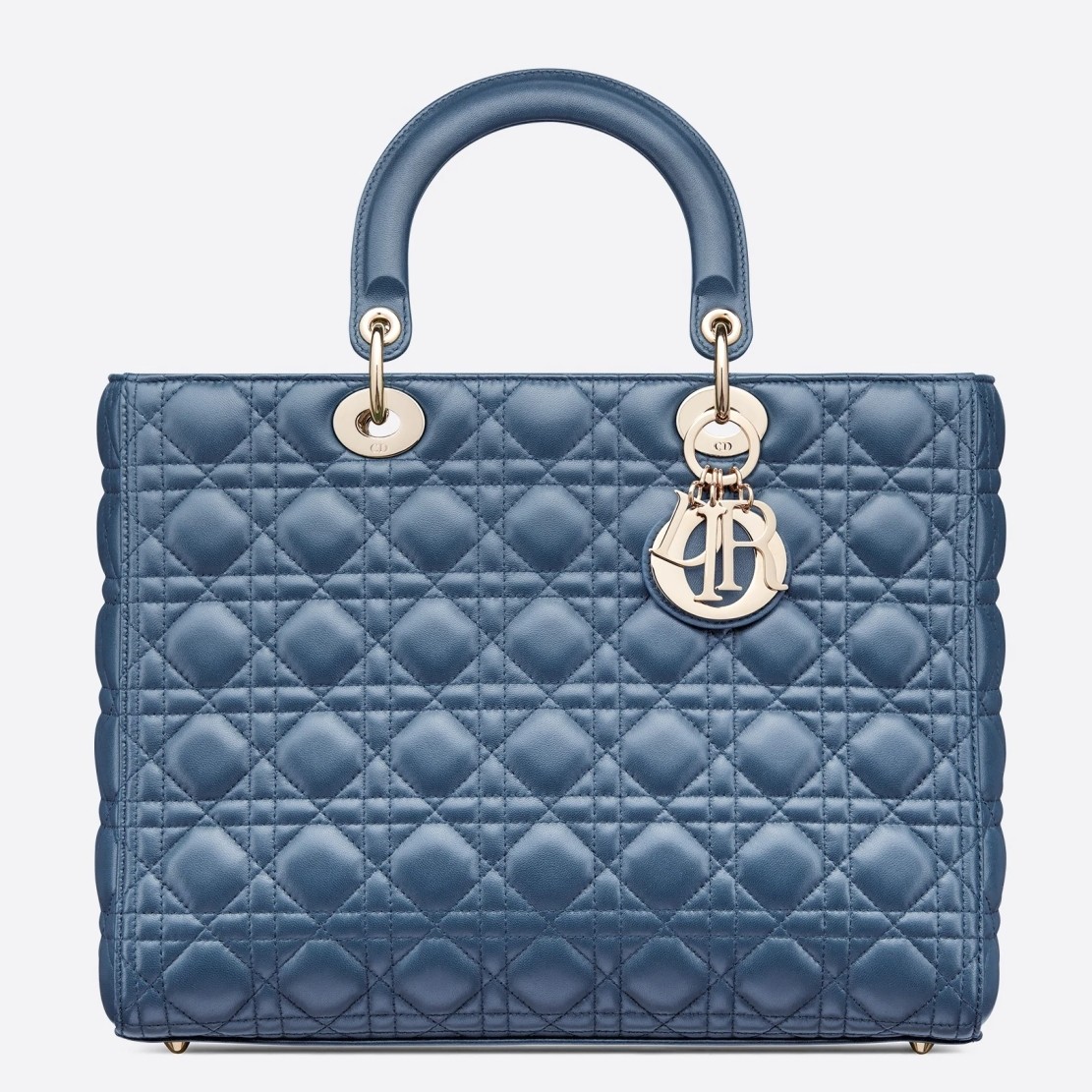 • Dior Large Lady Dior Bag In Denim Blue Cannage Lambskin