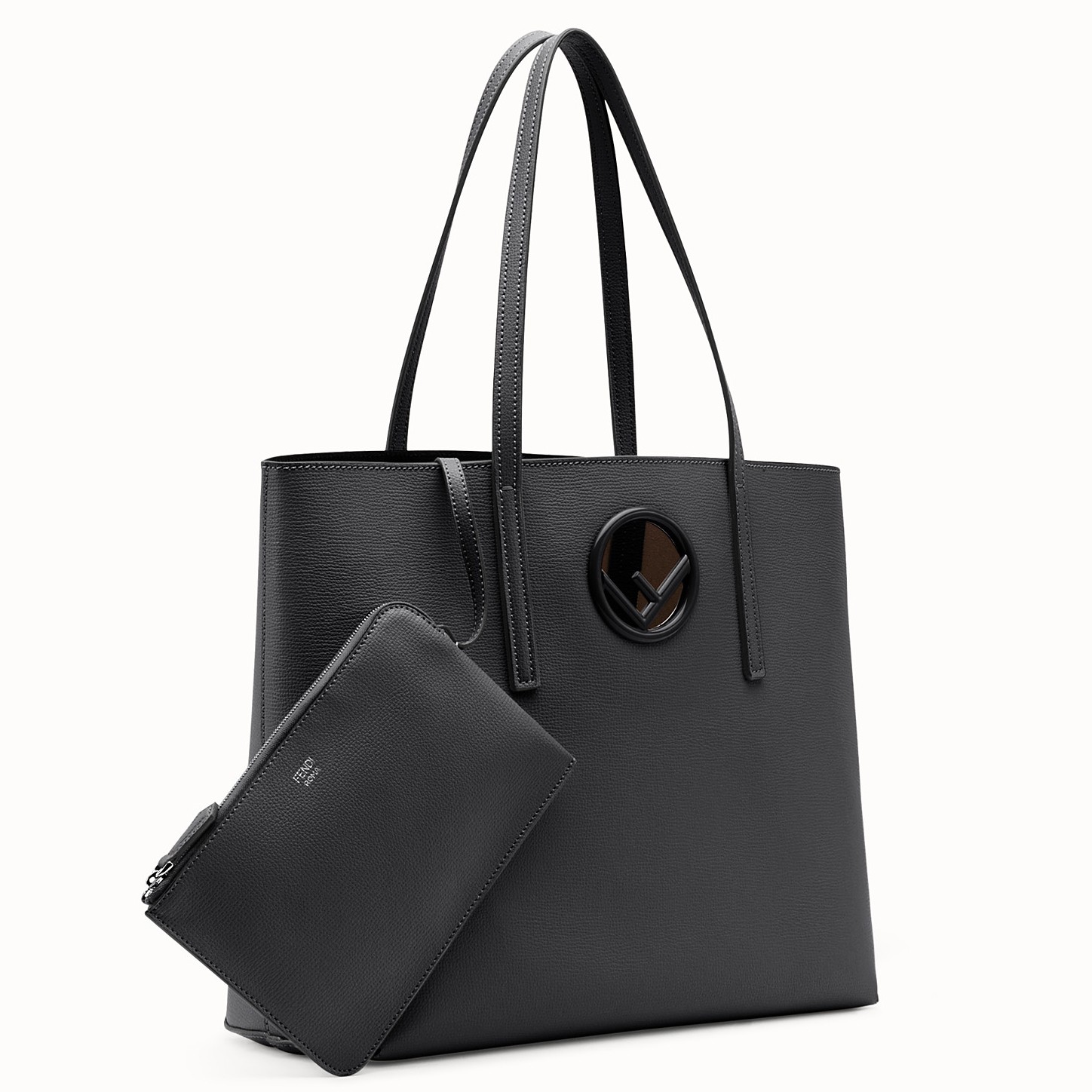 Fendi Black Leather Logo Shopper Bag