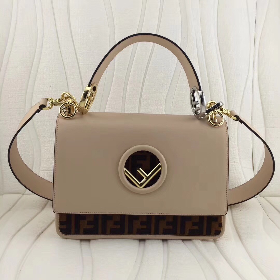 You're reviewing: Fendi Kan I F Shoulder Bag In Dune Calfskin With Printed FF Logo