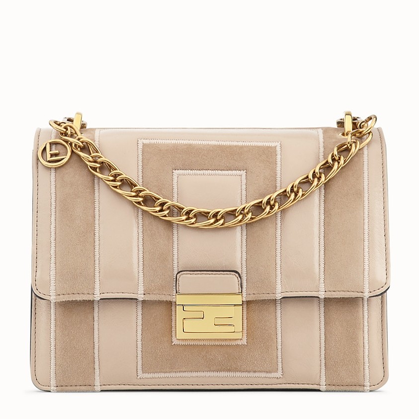 - Geometric flap with embossed corners and an iconic FF press-stud fastening