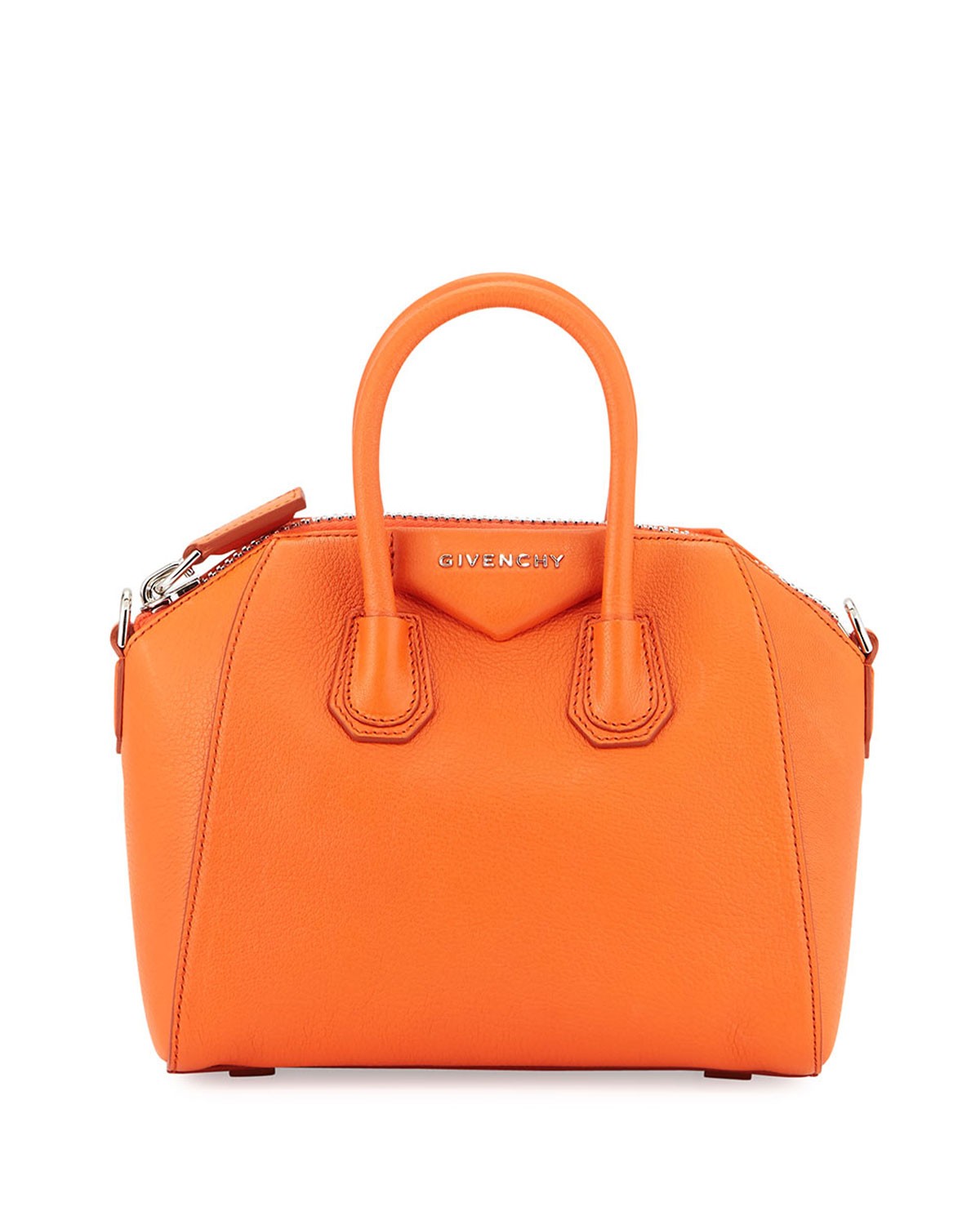 • Givenchy Antigona Mini Goatskin Satchel Bag Orange