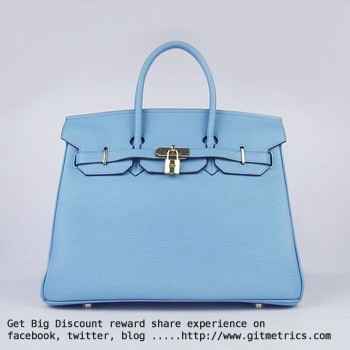 this Hermes Birkin 35cm Togo leather Handbags light blue golden comes with: Hermes lock,keys,clochette,sleepers,care booklet,rain protection,tags and copy of the genuine receipt from an official Hermes store.