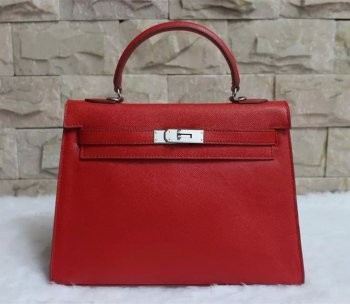 Hermes Kelly 32cm Epsom Leather Handbag Red Silver