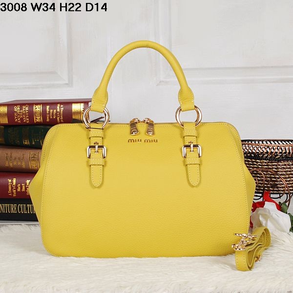 Miu Miu Grainy Madras Yellow Medium Top Handle Bag