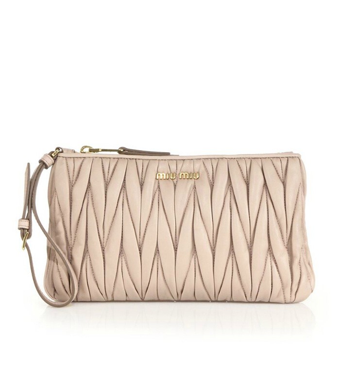 Miu Miu Matelasse Leather Zip Pouch Cammeo