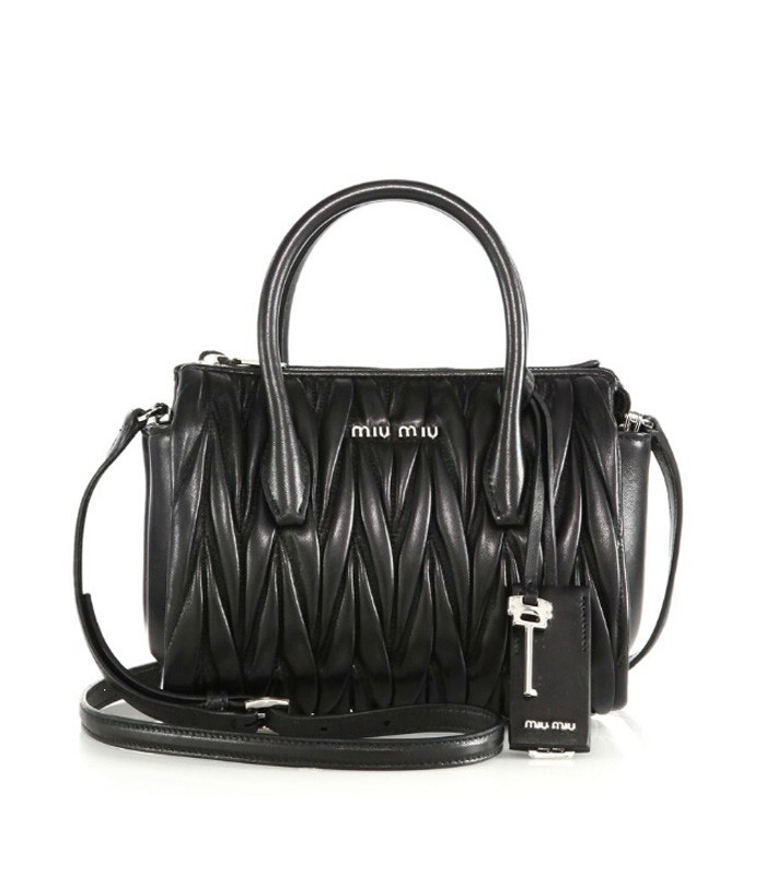 Miu Miu's signature matelass leather lends exquisite texture to this classic silhouette, here scaled down to petite proportions for day-to-evening versatility. An elegant and functional design with a secure zip top and dual carrying options.