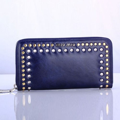 Royalblue Leathergold and silver studstwenty slots for cardsfour slots for billsone zipped compartmentdesigner plaqueZip fastening along sides