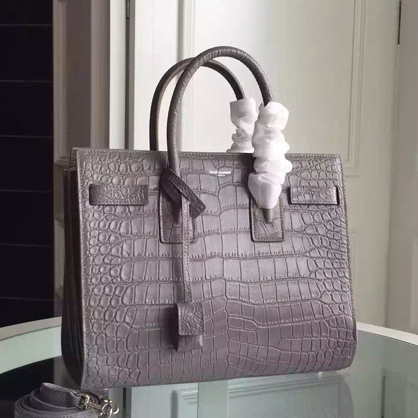 Yves Saint Laurent Small Sac De Jour Croc Embossed Grey Bag
